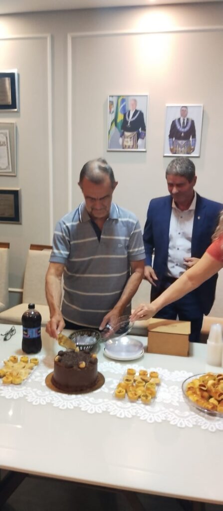 Sob pretexto de uma reunião, José Mauro foi convidado a comparecer ao gabinete do Grão-Mestre, onde foi surpreendido por uma calorosa recepção. O ambiente foi marcado por emoção, companheirismo e espírito fraterno, com direito a bolo comemorativo e um coquetel preparado para a ocasião.