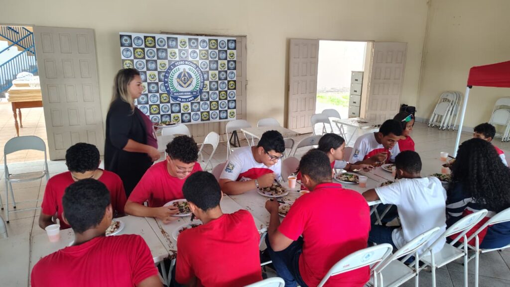 O pedido partiu da Orientadora Social Gigliane Alves, responsável pelos jovens e adolescentes do Serviço de Convivência e Fortalecimento de Vínculos do município. Sensibilizados com a iniciativa, a presidente da FRAFEM Cruzeiro do Sul, cunhada Hortência Setúbal, e o Venerável Mestre Milcael Freitas Guedes prontamente abriram as portas da Loja para acolher as crianças e a equipe de apoio com um almoço especial, preparado com muito carinho pelo Ir∴ Pedro Prado, secretário da Loja.
