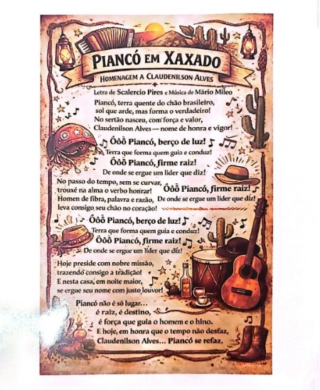 Conhecida pelo solo castigado pelo sol e pela aridez característica do semiárido nordestino, Piancó foi o ponto de partida de um menino que, como tantos outros, deixou o sertão em busca de horizontes mais largos. A letra da música narra essa jornada de resiliência, descrevendo Piancó como uma "terra quente do chão brasileiro" e um "sol que arde, mas forma o verdadeiro". O tributo exaltou o destino de um jovem que viajou o país, enfrentou desafios e, com força e valor, fixou raízes em Rondônia, onde hoje ocupa um dos mais altos cargos da maçonaria estadual.