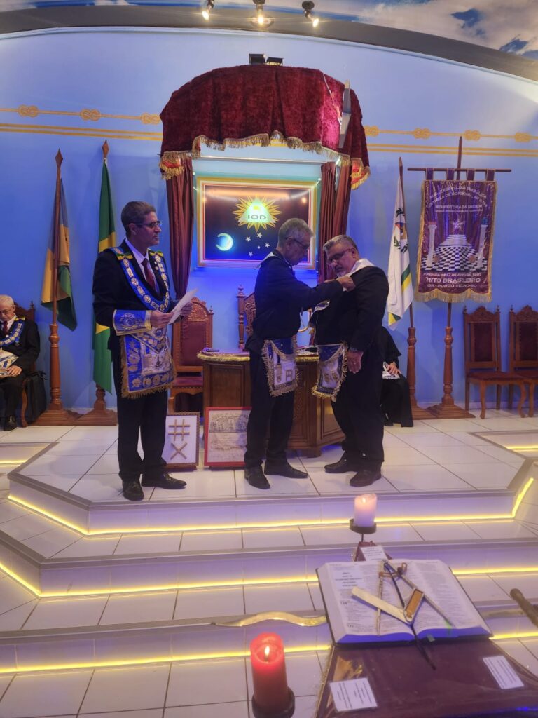Um dos pontos altos da sessão foi a entrega do certificado de Mestre Instalado ao Venerável Mestre da Loja, honraria concedida àqueles que já ocuparam o cargo máximo da Oficina. O diploma, entregue pelas mãos do Grão-Mestre, representa uma distinção de grande valor simbólico dentro da Maçonaria, garantindo ao seu portador uma posição especial em qualquer loja do mundo.
